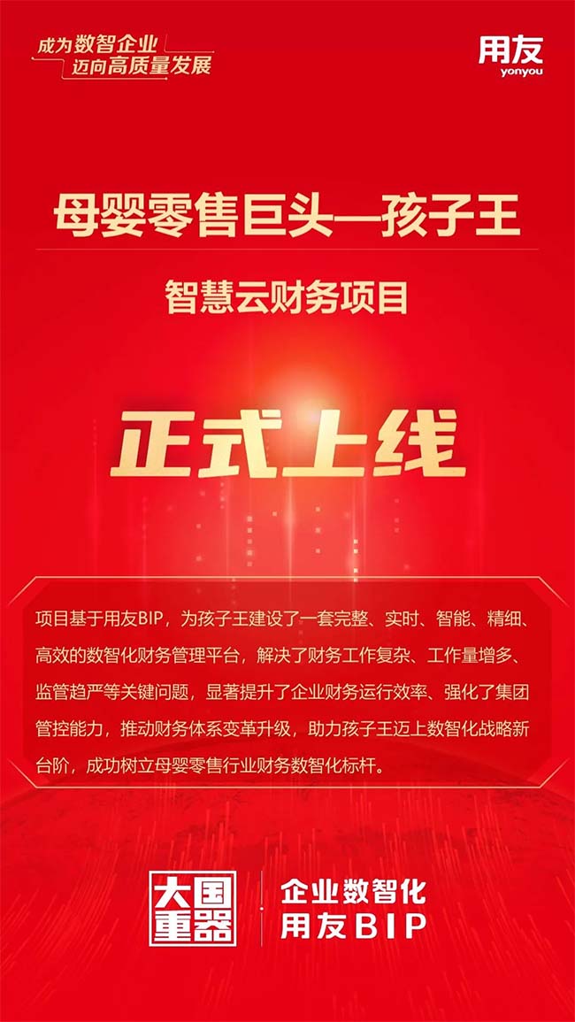 近日,母嬰童零售行業(yè)巨頭孩子王兒童用品股份有限公司(簡(jiǎn)稱“孩子王”)智慧云財(cái)務(wù)項(xiàng)目成功上線!得益于數(shù)字化轉(zhuǎn)型的后發(fā)優(yōu)勢(shì),孩子王已經(jīng)搭建了5大前臺(tái)系統(tǒng)、3大中臺(tái)系統(tǒng)、7大后臺(tái)系統(tǒng),涵蓋約7000多個(gè)子系統(tǒng)模塊,將1300多個(gè)數(shù)字化生產(chǎn)工具投入到門店經(jīng)營(yíng)中,構(gòu)建出多樣化的商品服務(wù)、高效智能化的終端運(yùn)營(yíng)、品牌化的經(jīng)營(yíng)策略,形成了堅(jiān)不可摧的企業(yè)護(hù)城河。孩子王財(cái)務(wù)以“業(yè)財(cái)融合”為使命,實(shí)時(shí)賦能業(yè)務(wù),縱深發(fā)展財(cái)務(wù)數(shù)智化。
