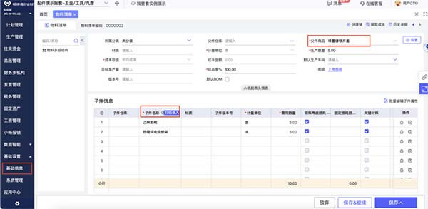 - 生產(chǎn)流程規(guī)范化:建立主要產(chǎn)品BOM(物料清單),使用生產(chǎn)加工單管理生產(chǎn)任務(wù)。對于集中領(lǐng)用的輔料,先通過調(diào)撥單調(diào)撥到生產(chǎn)車間倉,再根據(jù)生產(chǎn)加工單和BOM領(lǐng)料,確保成本核算更精準(zhǔn)。定期盤點(diǎn)生產(chǎn)車間倉,處理耗用差異,通過產(chǎn)成品入庫單核算入庫成本。