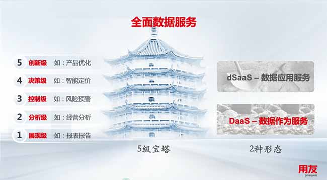 用友提出了數(shù)據(jù)驅(qū)動(dòng)的企業(yè)數(shù)據(jù)服務(wù)的“5級(jí)寶塔模型”,如下圖: