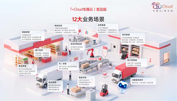 同時(shí),AI驅(qū)動下,業(yè)財(cái)融合正從傳統(tǒng)的流程對接升級為“數(shù)據(jù)同源、規(guī)則共通、決策共生”的智能協(xié)同模式。T+Cloud專屬云普及版通過AI引擎重構(gòu)業(yè)務(wù)流程,讓12大智能場景成為業(yè)財(cái)數(shù)據(jù)的“雙向轉(zhuǎn)化樞紐”。