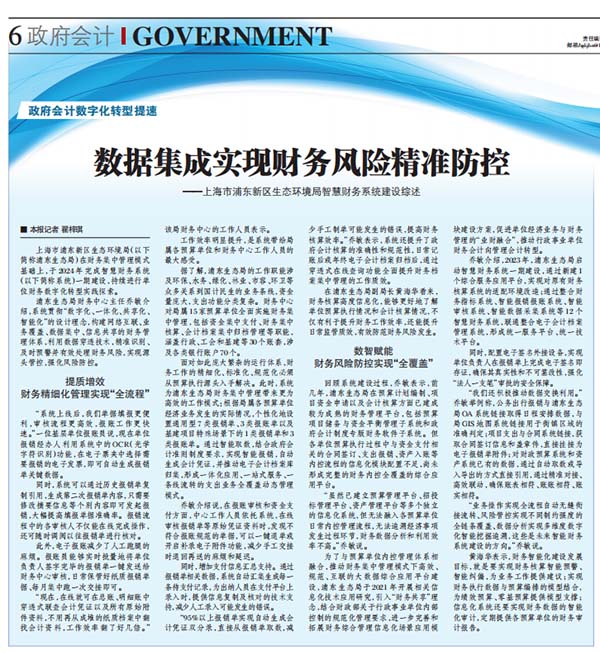 浦東生態(tài)局財務(wù)中心主任喬敏介紹,系統(tǒng)貫徹“數(shù)字化、一體化、共享化、智能化”的設(shè)計理念,構(gòu)建網(wǎng)絡(luò)互聯(lián)、業(yè)務(wù)覆蓋、數(shù)據(jù)集中、信息共享的財務(wù)管理體系,利用數(shù)據(jù)穿透技術(shù),精準(zhǔn)識別、及時預(yù)警并有效處理財務(wù)風(fēng)險,實(shí)現(xiàn)源頭管控,強(qiáng)化風(fēng)險防控。
