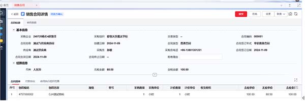 4、采購(gòu)合同確認(rèn)完成,采購(gòu)合同就又回到了待采購(gòu)商確認(rèn)的狀態(tài),采購(gòu)商可以提交內(nèi)部審批流,如果沒(méi)有配置審批流或者審批完 成采購(gòu)合同就可以生效了。生效后供應(yīng)商就收到審批通過(guò)的銷(xiāo)售合同。